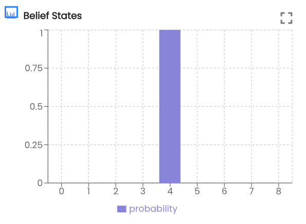 t=4 | Position belief: [0. 0. 0. 0. 0. 0. 1. 0. 0.].