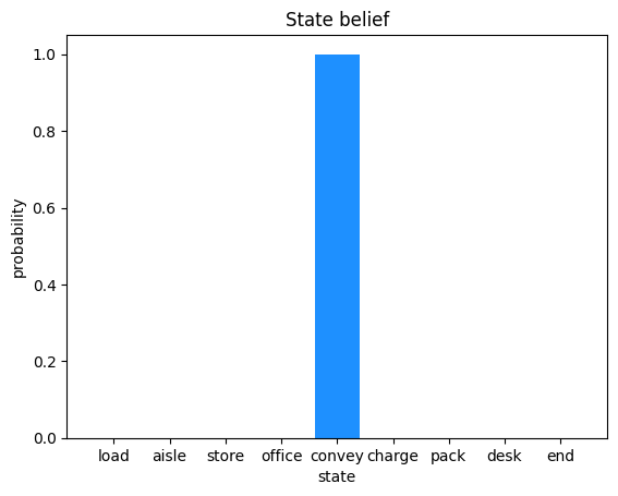 t=5 | Position belief: [0. 0. 0. 0. 0. 0. 1. 0. 0.].
