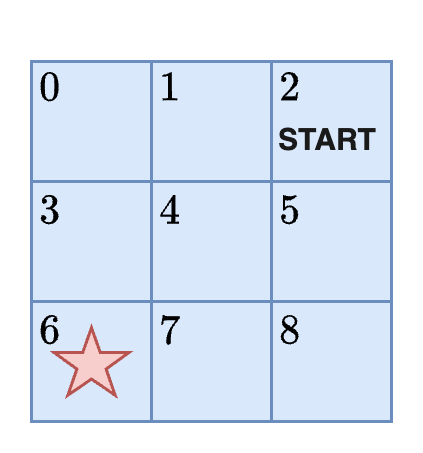 According to this problem statement, the agent must begin at the START and navigate to the red star: